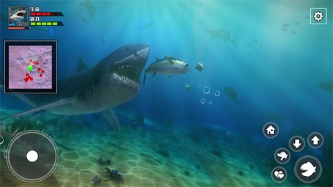 3、你需要通过滑动摇杆控制鲨鱼的移动,这样才能灵活地在海底游弋;