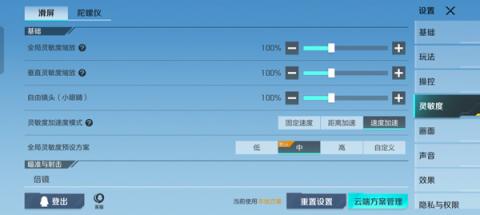 3、进入灵敏度设置界面后,依据自己的游戏风格进行相应的调节。