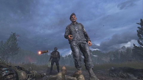 直升机残骸冒着浓烟,谢菲尔德这个老练的军人竟毫发无损地从坠机中走出。接下来的情节堪称系列中最惊心动魄的肉搏之一。他轻松制服了受伤的肥皂,并用那把标志性的匕首刺入了肥皂的胸膛。相信所有玩家在看到这一幕时,心脏都像被那只手紧紧攥住。普莱斯上尉的及时援救也被谢菲尔德反击击倒。然而,肥皂,这位从新兵成长起来的铁血战士,在生死关头爆发出惊人的意志力。他忍痛将匕首从自己身上拔出,在谢菲尔德准备给予普莱斯致命一击的瞬间,奋力掷出飞刀。这一刀精准地命中了谢菲尔德的眼睛,终结了这个为了一己私欲挑起世界大战、葬送无数生命的阴谋家。硝烟散去,只有重伤的肥皂和精疲力竭的普莱斯躺在河边,远处是谢菲尔德冰冷的尸体。没有欢庆胜利的凯歌,只有劫后余生的喘息和失去战友的虚无。这个结局充满了电影式的暴力美学与悲怆感,它告诉你,正义的伸张往往伴随着惨痛的代价。