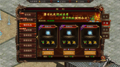 这游戏不止有以上福利,其他达标福利也在不断等你来拿!享受绝版称号时装、海量培养资源等。丰厚的宝库奖励和打金奖励,都在等你来挑战。在这中州大陆上,尽情挥洒你的智慧与勇气,书写属于的辉煌篇章!