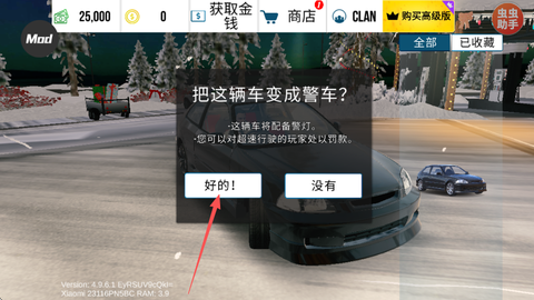 3、最后点击确认,你的爱车瞬间变身为警车,开始你的执法之旅吧!