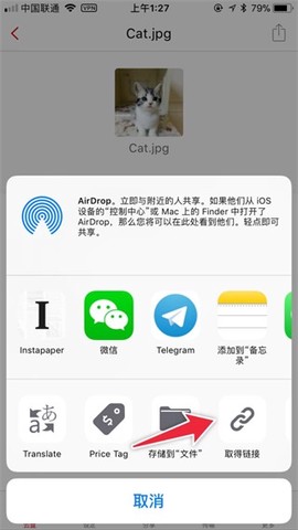 mega云盘的下载与使用1. 首先你需要获取到文件链接,只需长按分享的文件,底部会出现选项,选择【获得链接】即可。