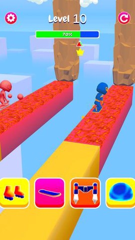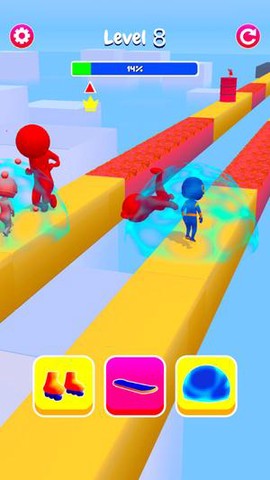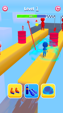 2、游戏途中会随机刷新的增益道具,如瞬间变身的无敌效果或极速冲刺,绝对能让你在紧张的跑酷之中享受到意料之外的乐趣。