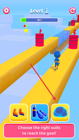 2、根据眼前的关卡环境,灵活选择你所需要的装备,面对障碍时不妨优先拿出防护类道具助你顺利通关。