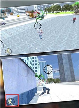 4、右下方的爆炸键,瞄准建筑物以飞檐走壁,攻击敌人。