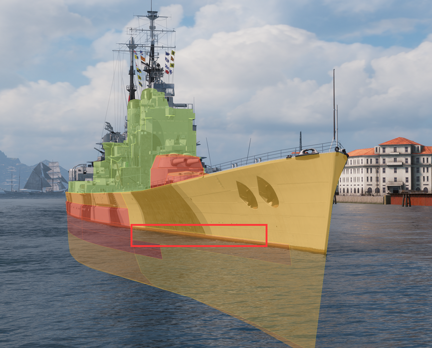 优势与短板 首先还是我们老生常谈的问题。想玩好一艘船,就得搞清楚她的优势区间和不擅长处理的事。瓦尔帕莱索的大宝剑半伤回复率高达85%,核心回复率也有33%,一口奶只需要8秒就能吃完。其高回复率在一定程度上弥补了32毫米首尾装甲的缺陷,使其无论是瞬时生存性还是长效续航能力,都堪称常规战列舰中的天花板。 除此之外,瓦尔帕莱索的作战指令也同样出众。战斗中,每取得一次副炮命中即可积攒8%的进度,相当于获得13发副炮命中就能积攒完毕。如果觉得这样还不够快的话,也可以通过击沉一艘敌舰,来直接获得100%进度从而激活指令。 当瓦尔帕莱索的指令激活后,可以在5秒内缩短95%的消耗品冷却时间。在不考虑任何技能和配件加成的情况下,瓦尔帕莱索可以用指令将损管和大宝剑80秒的CD缩短到4秒,等于直接获得一轮消耗品的使用机会。这个”F”搭配上高质量的大宝剑,赋予了瓦尔帕莱索极为出色的续航能力。 当然,瓦尔帕莱索的输出端的确存在一些不可忽视的短板。作为一艘主炮只配备了短引信AP弹的Ⅸ级战列舰,即使强化了穿深并且拥有小特跳,在面对顶级房那些真正的重装甲对手时也会力不从心。而与作战指令深度绑定的副炮武装,也受制于口径因素,难以将出色的理论DPM转化为有效输出。由此我们也不难看出,瓦尔帕莱索在多数情况下,更适合选定一路扮演承压核心角色。如何替友军分摊更多伤害才是这艘船应该重点思考的事情。 操作技巧 既然瓦尔帕莱索的战术核心是“挨打”,那么在挨打的同时少掉血,就要依靠一点简单的技巧来实现了。作为一艘头尾32毫米装甲的传统派战列舰,在我们的作战半径内必然会给敌人很多瞄准我们弱点的机会。此时,反向利用敌人的瞄准习惯进行角度欺诈就显得尤为重要。 红框内是小角度对敌时瓦尔帕莱索的核心区投影,460及以上口径的战列舰只要往中间靠上的位置瞄准,避开水线64毫米下巴就能碾爆黑牌 简单来说,当我们摆出很小的角度时,经验丰富的敌人就会抬高准星瞄准我们船头后方的核心投影区,而随着我们的角度越来越大,敌人的瞄准位置通常也会向水线侧舷转移。考虑到瓦尔帕莱索有着非常出色的转舵性能,我们非常轻易地就能在短时间内大幅改变航向角。借助这一特性我们就可以在接近敌人的时候刻意甩一个比较大的角度,把敌人的瞄准点骗到侧舷水线的主装附近,然后在一个合适的时机立刻反向打舵,使船体迅速回正,诱使敌方炮弹击中垂直布置的主装甲带,从而有效跳弹或减少伤害。 角度变大的时候核心投影变小,碾压32头之后爆黑牌就不太容易,但是相应的侧舷水线核心就会露出来,因此经验丰富的大口径战列舰玩家都会根据对方的角度调整瞄准位置 这个技巧如果单论操作是相当简单的,只需要轻点AD即可,但是在什么时机进行假动作转向就是一个非常吃经验的问题了。在实战中需要我们观察对手的操作习惯:如果对方倾向于对着贴脸的敌人泼水,缺乏仔细且冷静的瞄准,那么我们只需要计算对方的装填间隙,在对方开出一轮炮之后立刻把角度摆大,在对方装填时间还剩3-4秒的时候再把船头摆回去,就能有极大概率骗掉敌人的炮弹。 带上一个小舵能极大提高操作空间 当我们能够理解假动作的操作逻辑和基本的运作方式之后,瓦尔帕莱索的另一个特性就能极大帮助我们来施展这一战术了。众所周知,前卫船体有着向前43度向后40度的主炮齐射角。无论是近战还是远程交火,都很难让我们在安全的情况下发挥出8门炮的全部火力。瓦尔帕莱索作为一艘同船体战列舰,尽管也有着类似的问题,但是从另一方面来说,齐射角也是我们用来做假动作的有效参照。 考虑到并不是每一位玩家都能掌握自己的准确对敌角度,因此向前43度的齐射角就是个非常好的参考。在我们保持船头对敌的时候,只要注意后部主炮的两个准星位置,让他们离前部主炮的准星环保持一段距离,就能把自己的对敌角度稳定控制在30度以内,在进行假动作机动时也可以用齐射角作为参照。当后部2个主炮塔准星圈靠近作战指令进度条时立刻往回打舵,能有效避免角度扭的过大进入危险区间。 一旦熟练掌握这类生存技巧,瓦尔帕莱索就能展现出极其出色的站场能力,只要不陷入绝对优势火力的长时间集火,这艘船就很难被鱼雷以外的手段快速击沉。虽然短距离低效率的输出特性导致瓦尔帕莱索的就业面很窄,但是不可否认的是这艘船玩起来非常省心,我们仅需把握好指令和大宝剑的使用时机,就能让敌人在浪费大量火力的同时逐渐错失进攻窗口,最终化作我们胜利之路上的垫脚石。