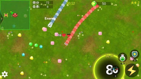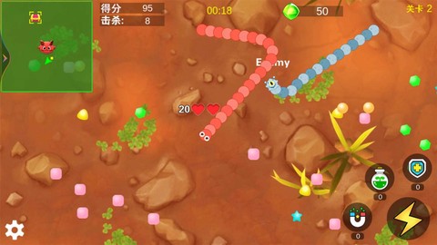 3. 道具系统绝对是一个神秘的助攻,可以收集不同的能力特效,比如加速、瞬移、变身、毒液等,提升小蛇的作战能力,让你在战场上如鱼得水。