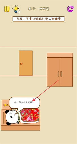 2、在这关中,你需要通过小心操作,避免妈妈打扰到二狗睡觉。想办法保持安静,成功达到关卡目标。