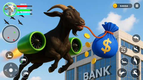 《疯狂山羊模拟器》的最大吸引力无疑是其无穷无尽的幽默感和自由度。撞飞汽车、用头撞破窗户,每一个动作都是荒诞的表现。更有甚至,山羊能够跳得比摩天大楼还高,还能驾驶坦克与直升机,这种逆天的设定让你在游戏里体验到绝对不可能的乐趣。