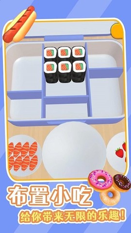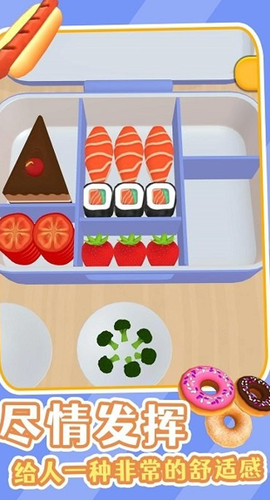 美味的便当是一款充满烹饪挑战与乐趣的手游,玩家可以尽情发挥创意,制作出各种美味可口的便当,学习到许多实用的便当制作技巧,并将其应用于现实生活中。这款游戏为你提供了丰富多样的饭盒和食材,允许玩家进行自由组合,为每位顾客定制独一无二的美食体验。
