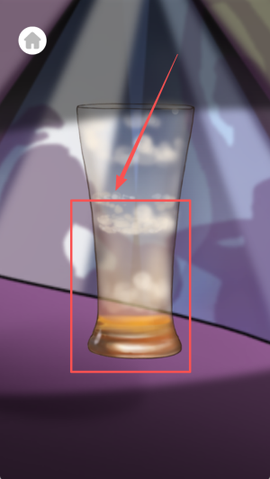 美妆日记攻略1. 点击红色箭头指示的玻璃杯下半部分,根据游戏提示进行饮品的制作或装饰,体验创作的乐趣。