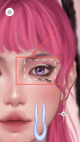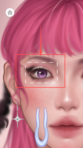 4. 特别关注红色方框标出的左眼区域,使用美瞳工具更改眼球颜色或增添特效,令角色眼神更加迷人。