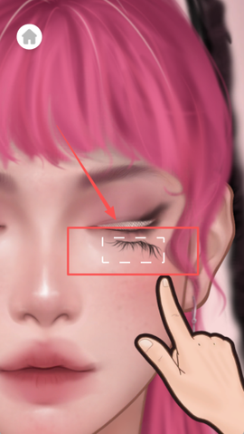 3. 根据手指指向的眼部位置,使用眼影刷为角色涂抹富有创意的眼影色彩,玩转层次与光影。