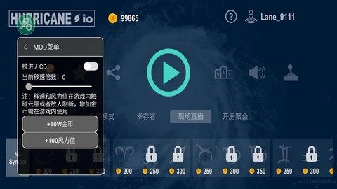 飓风大作战无限金币说明无CD推进、五段移动速度调节、+10W金币、+10000风力值,绝对不容错过!