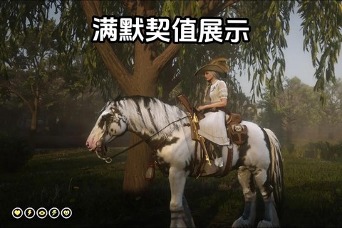 马匹互动与默契培养上马只是与马匹互动的开始。经常、和你的马可以提升默契度。默契度越高,马匹对你的指令响应越快,上马动作也会更加流畅。你可以在马匹静止时按住对应按键来查看互动选项,不同平台的按键提示会显示在屏幕右下角。