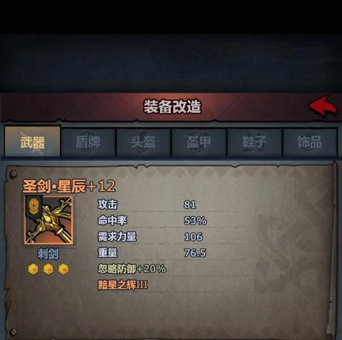 3、圣剑·星辰:你可以选择→增重→加粗→硬化的顺序进行改造