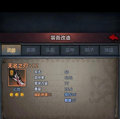 14、无名之刃:推荐的改造顺序是→增重→加粗→硬化