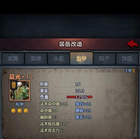 4、光辉之甲:改造建议为→减重→减重→洞察的