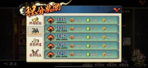 段位、奖励与资源循环积分赛的段位从低到高分为素霜、竹青、靛蓝、紫藤、赤金五个大段,每个大段又有一到五阶。比如200-399分是素霜一阶,每提升100分大约提升一个段位,最高是赤金五阶。 奖励主要分两块:一是每天晚上九点根据你当前段位发放的“段位奖励”;二是根据你在本服务器的积分排名发放的“排名奖励”,排名越靠前,给的铜币、声望和积分币越多。 积分币可以在积分商店里消费,商店每天自动刷新,也能花金币手动刷,里面能换到忍者碎片、勾玉、忍玉、秘卷碎片这些硬通货,是你提升战力的重要补给站。 所以,积分赛不只是个比拼场,更是一个稳定的资源获取循环,每天打满肯定是不会错的。