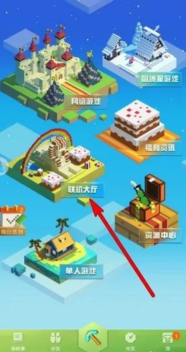 1、启动起床战争国际服官方正版,进入主界面后,你将看到【联机大厅】的选项。