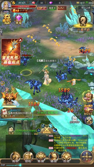 1、万人同服,千人同屏的热血战斗,让你在游戏中尽情探索与征战;