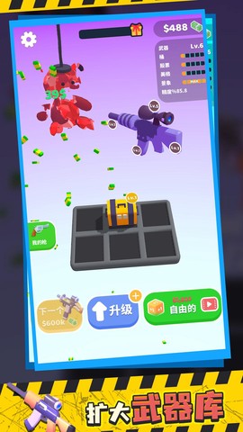2、每次击杀都能收获金币,利用这些金币不断提升武器等级,提升战斗能力。