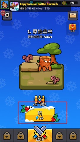 如何畅玩卡皮巴拉幸存者1、首先点击游戏首页的“原始森林”关卡,准备好进入冒险的第一步,点击【玩】按钮。
