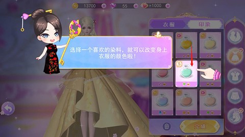 3、然后在印染界面选择喜欢的染料,轻松改变裙子的颜色;